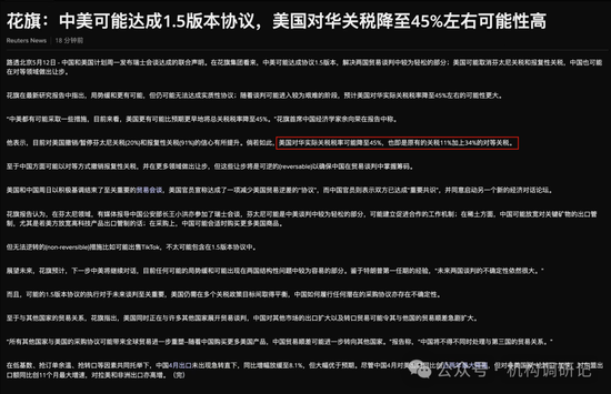 花旗:中美可能达成1.5版本协议,美国对华关税降至45%左右可能性高